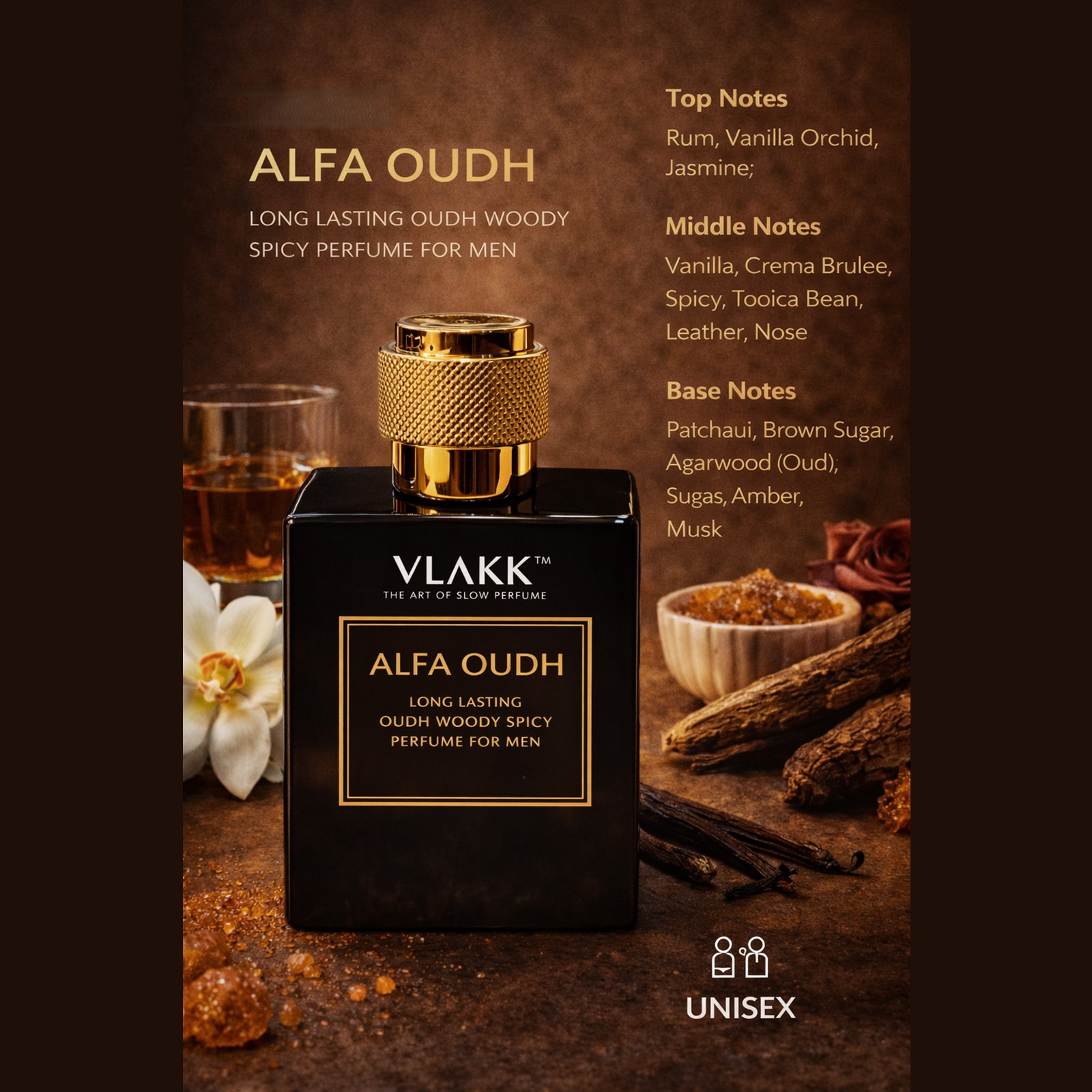 Enter the world of royalty, power, and traditional Arabian strength with VLAKK™ Alfa Oudh, a bold masculine fragrance created for men who want to leave a legendary impression. Crafted with a deep fusion of authentic Oudh, rich spices, and warm woody notes, Alfa Oudh delivers a scent that is intense, exotic, and impossible to forget.