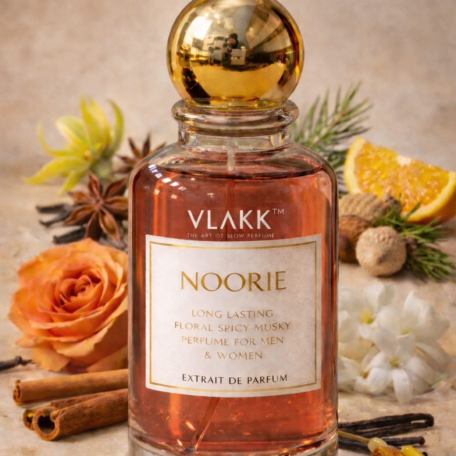 VLAKK™ Noorie is crafted for individuals who radiate warmth, elegance, and soulful charm. This extrait de parfum blends exotic florals, aromatic spices, and deep musky‑amber undertones to create a fragrance that feels expressive, sensual, and beautifully balanced.