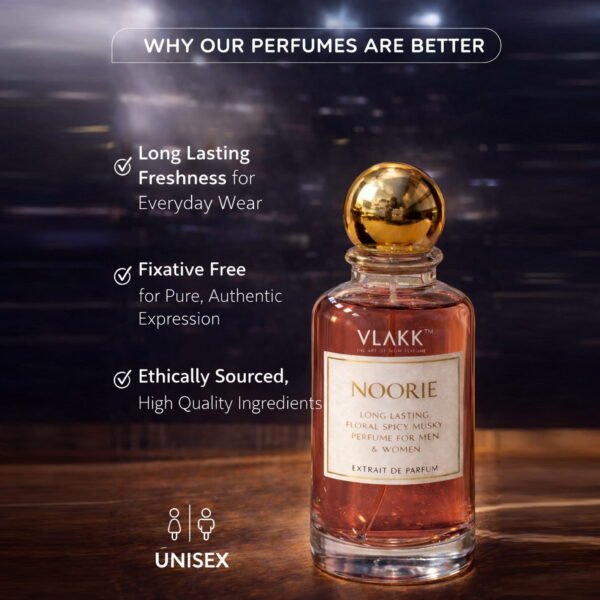 This makes VLAKK™ Noorie a perfect romantic floral perfume for individuals who appreciate fragrances that feel smooth, emotional, and beautifully layered.