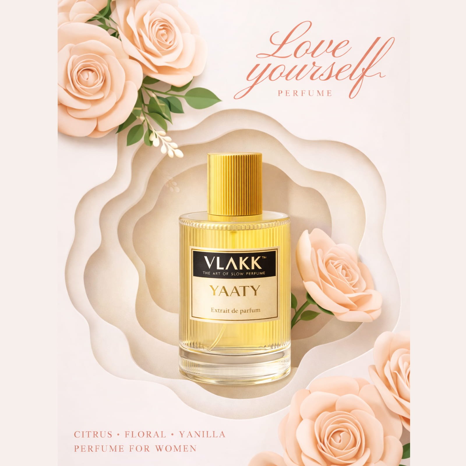 VLAKK™ Yaaty is crafted for women who radiate grace, confidence, and a naturally captivating charm. This extrait de parfum blends sparkling citrus, elegant florals, and warm vanilla‑amber undertones to create a fragrance that feels bright, feminine, and irresistibly comforting.